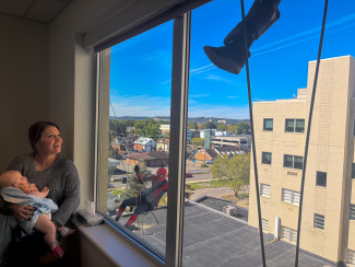 “Our goal is to make sure kids still get to feel like kids, even when they’re in the hospital,” said Carleigh Cazad Francis, B.M., MT-BC, Child Life Coordinator and music therapist at Hoops Family Children’s Hospital. “When our patients see superheroes outside their window, it gives them a moment to forget about treatment and just smile. Those moments of joy and play are a vital part of healing.”